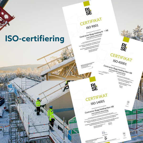 I september 2022 påbörjade vi certifieringen till ISO 9001, ISO 14001 och ISO 45001. Vi har under ett antal år arbetat med ledningssystem som grundar sig på de aktuella ISO-standarderna utan att vara certifierade, därför var det naturligt att ta steget fullt ut och genomföra en certifiering. Certifieringen säkerställer att ständiga förbättringar sker kontinuerligt och systematiskt inom kvalitets-, miljö- och arbetsmiljöområdet. Vi blev klara med alla certifieringar i februari 2023.